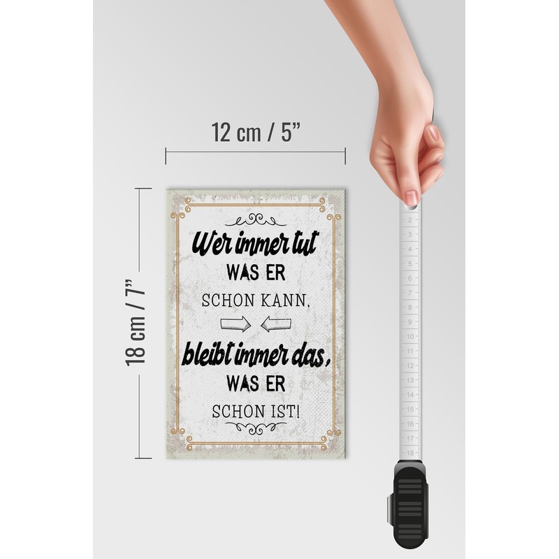 • [VIELSEITIG EINSETZBAR] Größe 12x18cm, rechteckig, mit rückseitig eingelassenem Aufhänger. Ideal zum Aufhängen in der Küche, Büro, Wohnzimmer, WC oder als Statement zum Hinstellen auf das Sideboard, Tisch, Schrank, Garderobe, Kommode, Fensterbank.