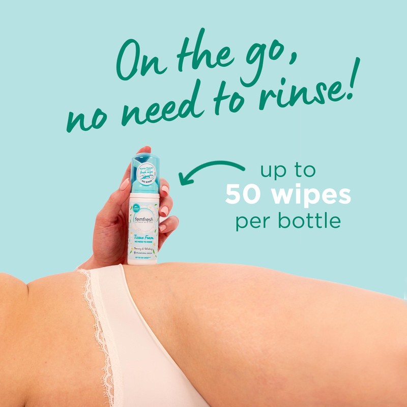 - Includes one 50 ml bottle of Femfresh Daily Tissue Foam, no-rinse cleansing foam, designed to fit in your bag with 50 uses*** for on-the-go intimate care.