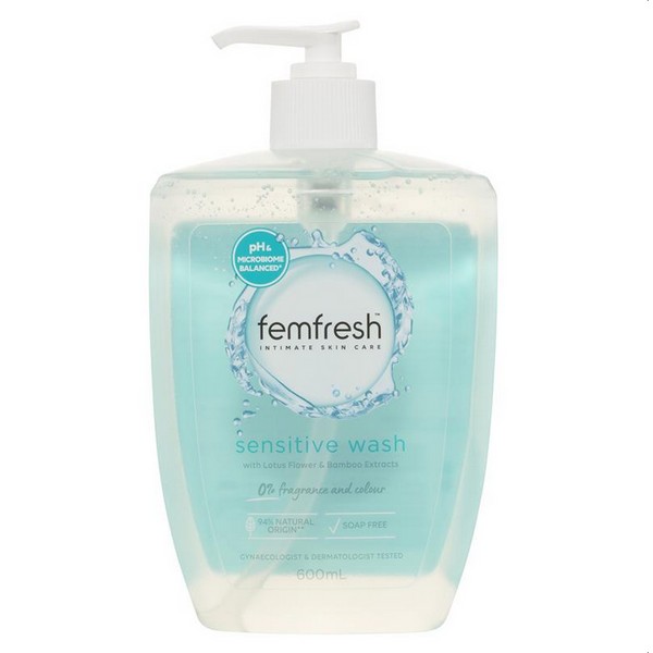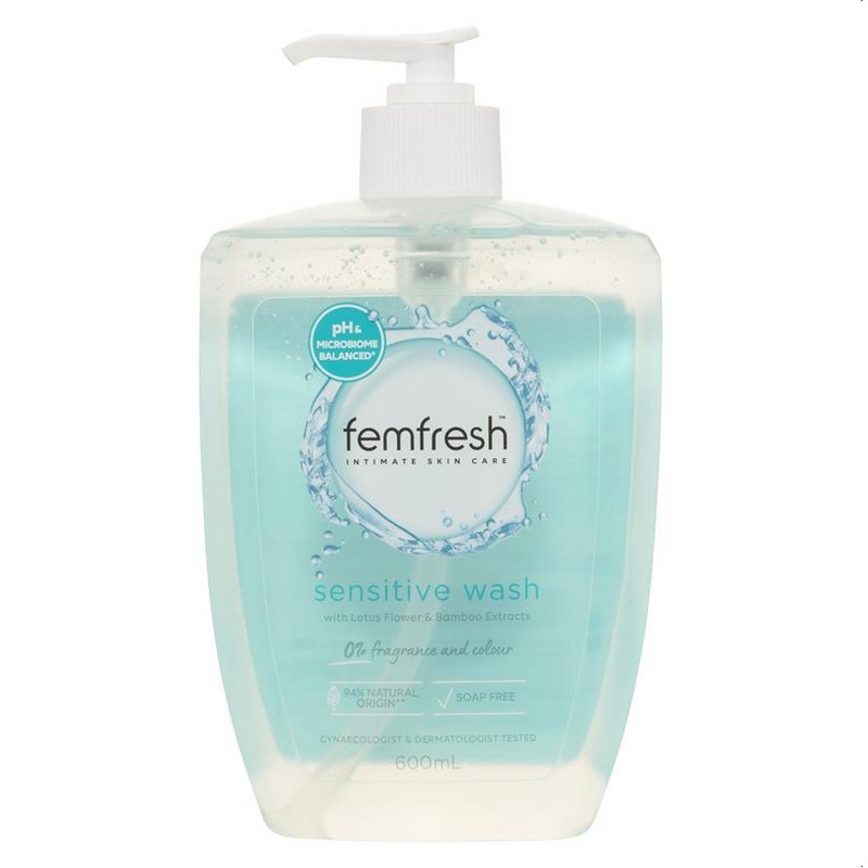 Femfresh™ sensitive wash with Lotus Flower and Bamboo extracts, is especially formulated for sensitive skin without soap, fragrance and colour.