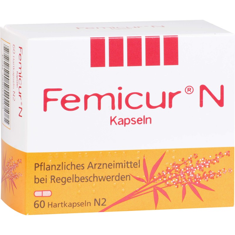 Femicur N Kapseln. Wirkstoff: Trockenextrakt aus Mönchspfefferfrüchten. Anwendungsgebiete: Rhythmusstörungen der Regelblutung (Regeltempoanomalien), monatlich wiederkehrende Beschwerden vor Eintritt der Regelblutung (prämenstruelle Beschwerden), Spannungs- und Schwellungsgefühl in den Brüsten (Mastodynie). Warnhinweis: Enthält Cellulose und Lactose. Packungsbeilage beachten!