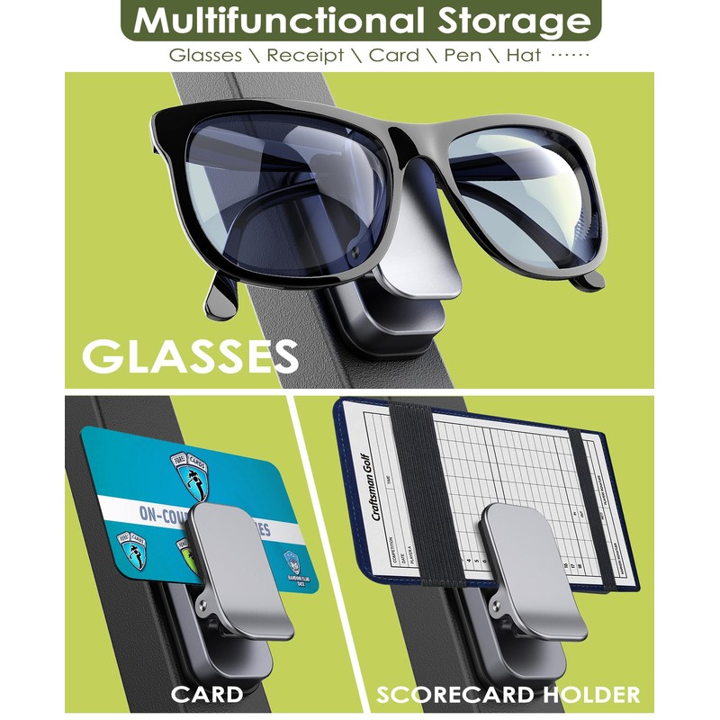 - 【𝗦𝗹𝗲𝗲𝗸, 𝗗𝘂𝗿𝗮𝗯𝗹𝗲, 𝗥𝗲𝗮𝗱𝘆 𝗳𝗼𝗿 𝗔𝗰𝘁𝗶𝗼𝗻】This isn’t some flimsy plastic clip. Oh no. This golf cart glasses holder is sleek, tough, and built for the course.The premium craftsmanship and sleek design not only look sharp on your golf cart but are built to last. sunglass clips for golf cart will keep your sunglasses safe and sound for years to come.
