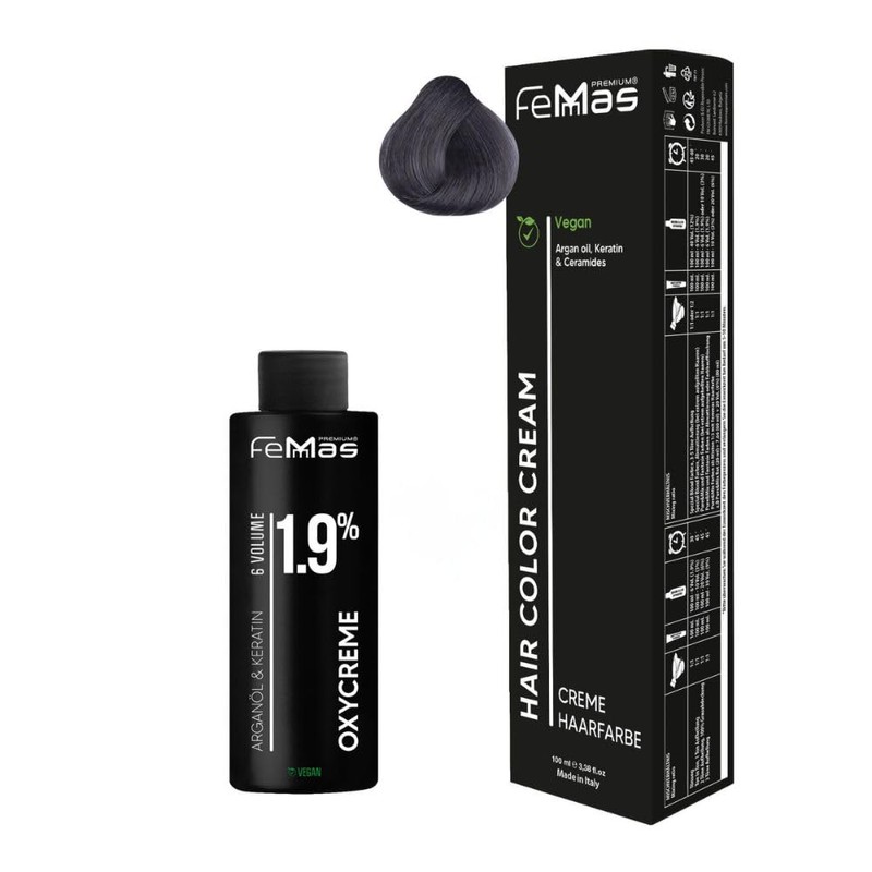 Femmas Ash Hair Colour Set I Hair Colour Cream 100 ml + Oxycreme 100 ml 1.9% I Permanent Hair Colouration + Developer I Gentle & Long Lasting I Salon Hair Colour for Home