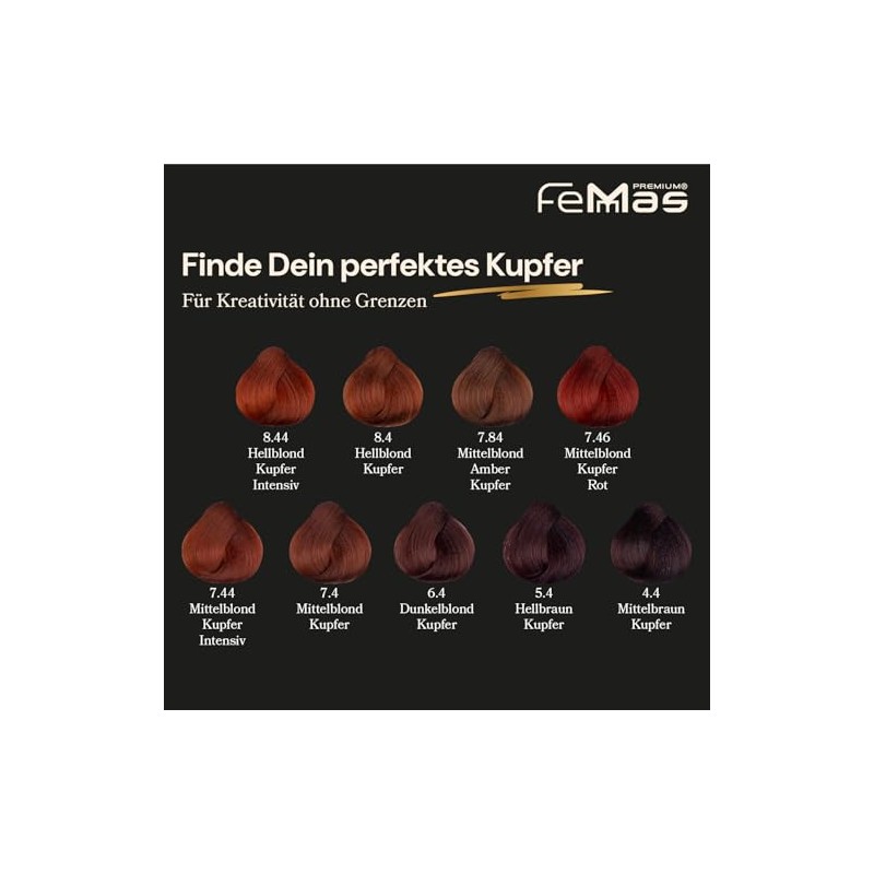 FemMas Haarfarbe 3x Hellbraun Kupfer 5.4 I Professionelle Creme Haarfarbe mit Arganöl, Keratin & Ceramiden I Als dauerhafte Haarfärbung oder Tönung für strahlende, haltbare Farbergebnisse I 100 ml