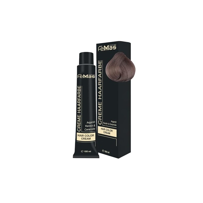 FemMas Haarfarbe Hellblond Kühle Kastanie 8.91 I Professionelle Creme Haarfarbe mit Arganöl, Keratin & Ceramiden I dauerthafte Haarfärbung oder Tönung für strahlende Farbergebnisse I 100 ml