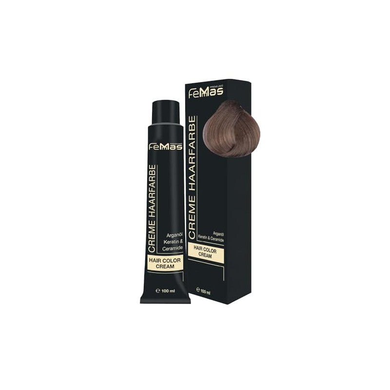FemMas Haarfarbe Hellblond Sand 8.7 I Professionelle Creme Haarfarbe mit Arganöl, Keratin & Ceramiden I Als dauerhafte Haarfärbung oder Tönung für strahlende, haltbare Farbergebnisse I 100 ml