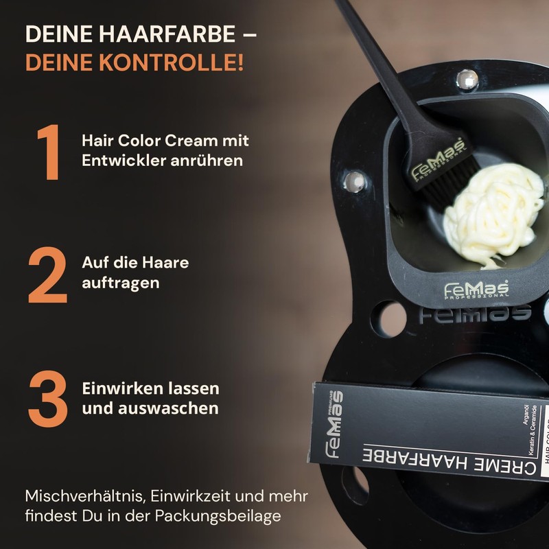 - Professional salon hair colour: our intense colours are enriched with argan oil, keratin and ceramides. Our hair colour cream delivers brilliant and durable colour results as well as healthy shine for all hair types - from fine to firm, from straight to curly.