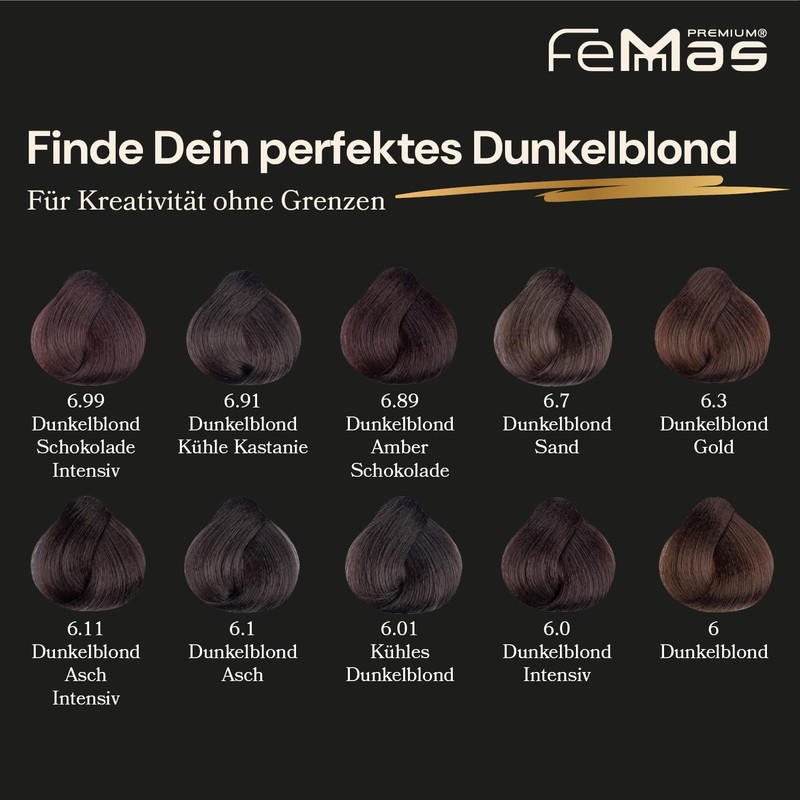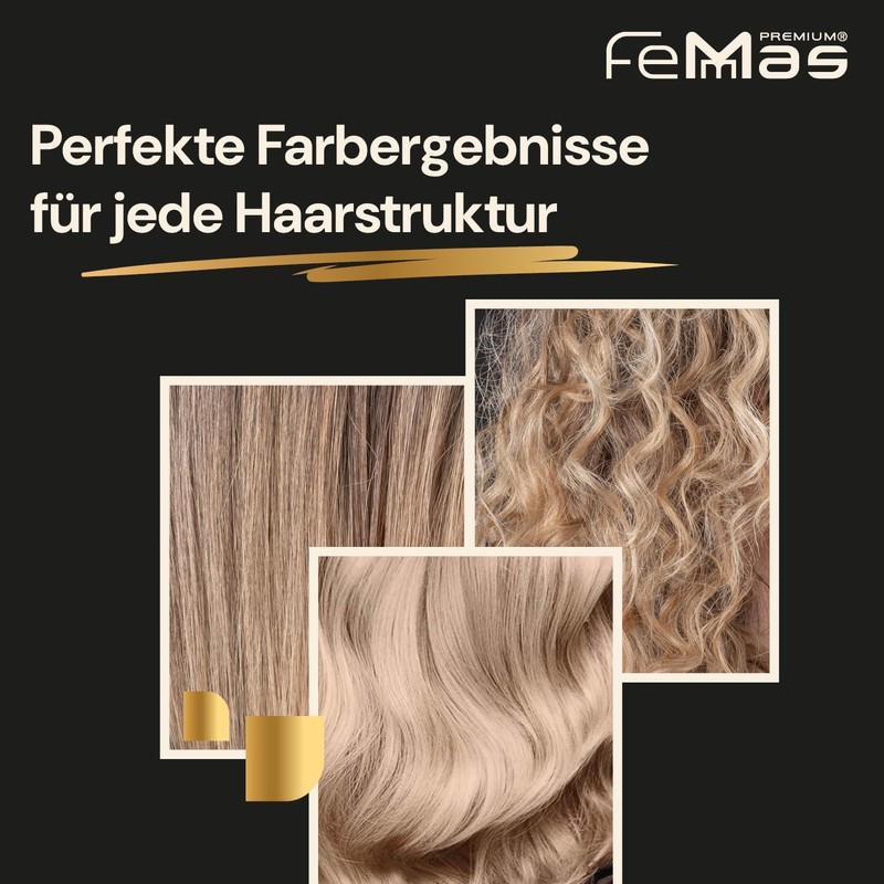- As individual as you: with the FemMas colouring set with either 1.9%, 3%, 6%, 9% and 12%, you can mix your own individual colour shade and lighten your hair by 1 to 4 shades.