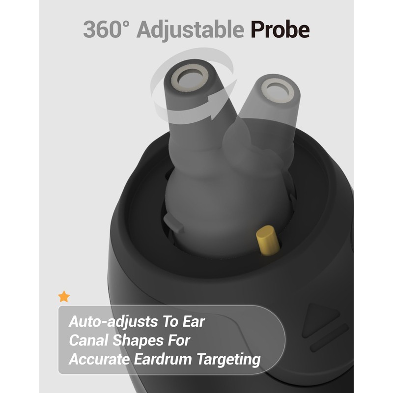 - Verbessertes Messerlebnis: 360° drehbarer Messkopf passt sich sanft jeder Ohrform an. Mit lautlosem Modus für störungsfreie Messungen - ideal für schlafende Kinder