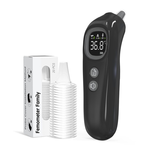 Femometer Familie Digitales Ohr-Thermometer, hochgenaue Ohr-Thermometer für Kinder, Erwachsene und Kleinkinder, 32 Speicher abrufen, 21 Einweg-Sonde Abdeckungen, FSA und HSA förderfähig