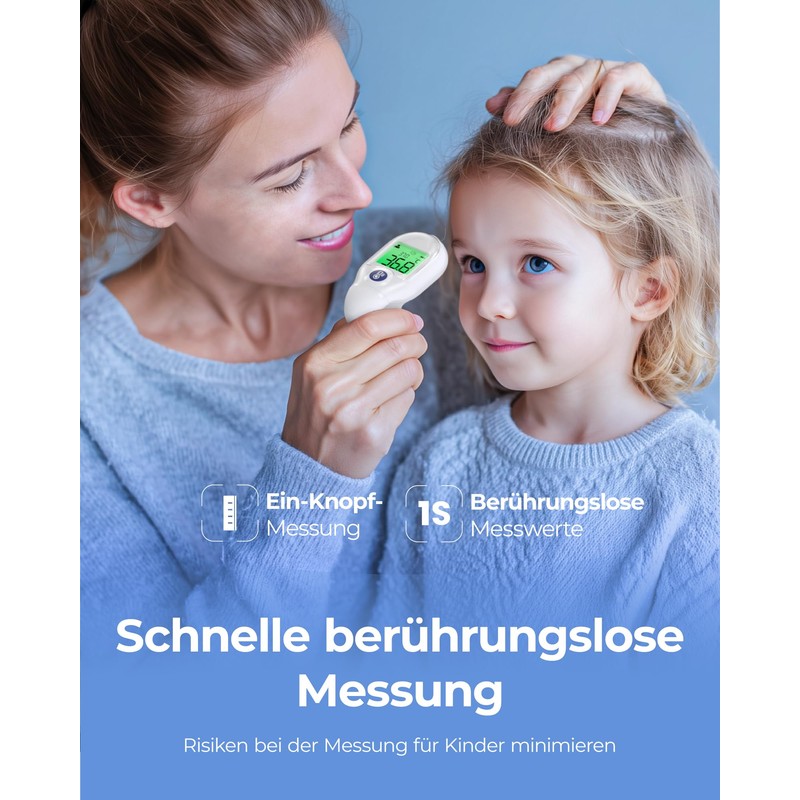 - Contactless & Hygienic Temperature Measurement: As a contactless forehead thermometer, it minimises the transmission of germs and bacteria - the safe baby thermometer. Instant, silent results at the touch of a button, ideal for body temperature and everyday use.