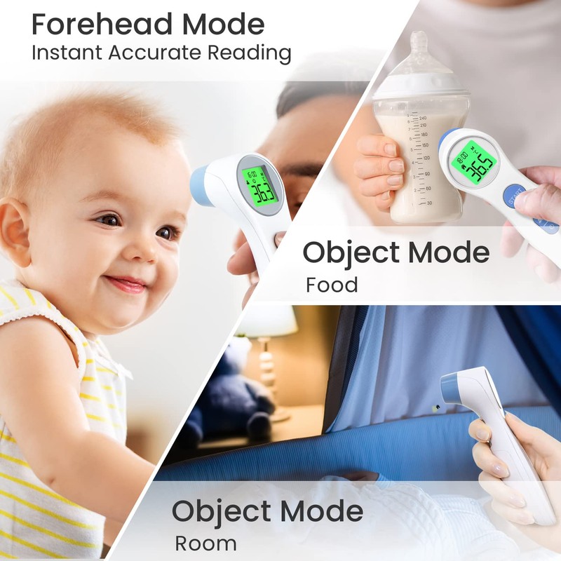 - [3 in 1 Infrared Thermometer] A thermometer can measure the temperature of the forehead with the help of infrared technology. It can also be used to measure the surface temperatures of objects (milk) and rooms.