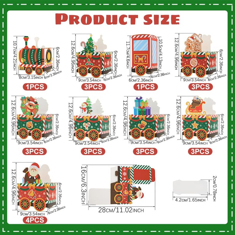 - Reusable: 24 reusable and inexpensive train shaped advent calendars are printed with Christmas elements, colorful and beautifully designed, perfectly match the Christmas theme, and are perfect Christmas gifts for children.