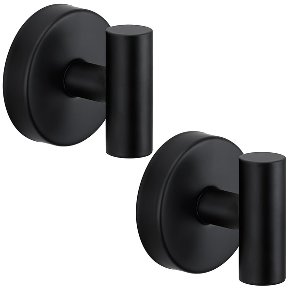 Fenas Suction Cup Hooks for Shower - Bathroom Reusable Hooks for Towels, Robes & Loofah - No-Drill Mounting on Kitchen,Walls,Metal,Glass,Mirrors,Tile & Smooth Non-Porous Surfaces (2, Matte Black)