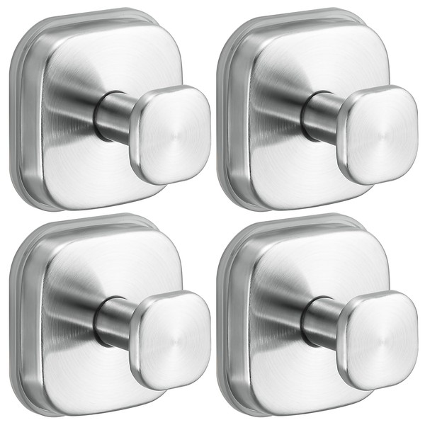 Fenas Suction Cup Hooks for Shower - Resuable Bathroom Hooks for Towels, Robes & Loofah - No-Drill Mounting on Kitchen,Walls,Metal,Glass,Mirrors,Tile & Smooth Non-Porous Surfaces (4, Brushed Nickel)