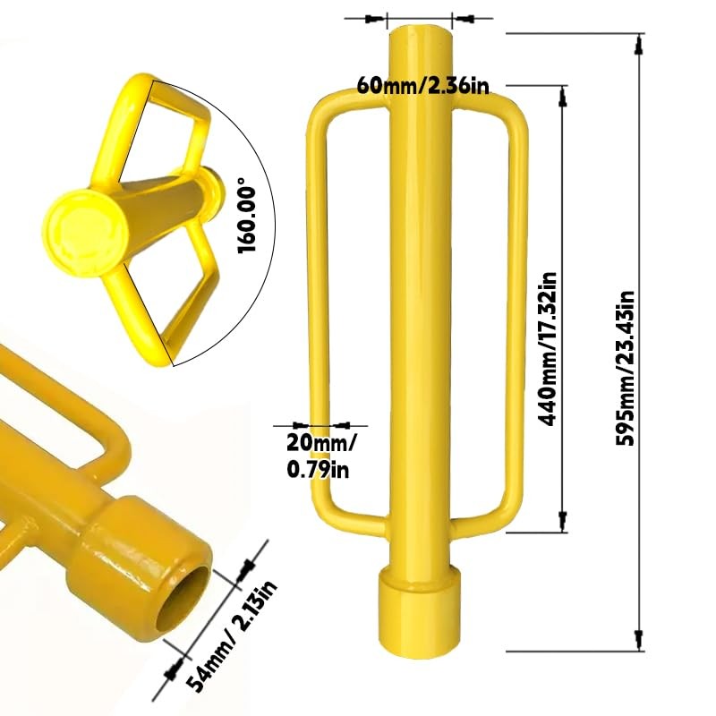 - Product Size: 600mm (23.4 inches) overall length. 60mm (2.36inches) inside diameter. Heavy steel construction: 16 pound drive weight. Heavy-wall pipe and sturdy thick rod handles. Weighted and reinforced steel head. Loop handles for comfortable gripping.