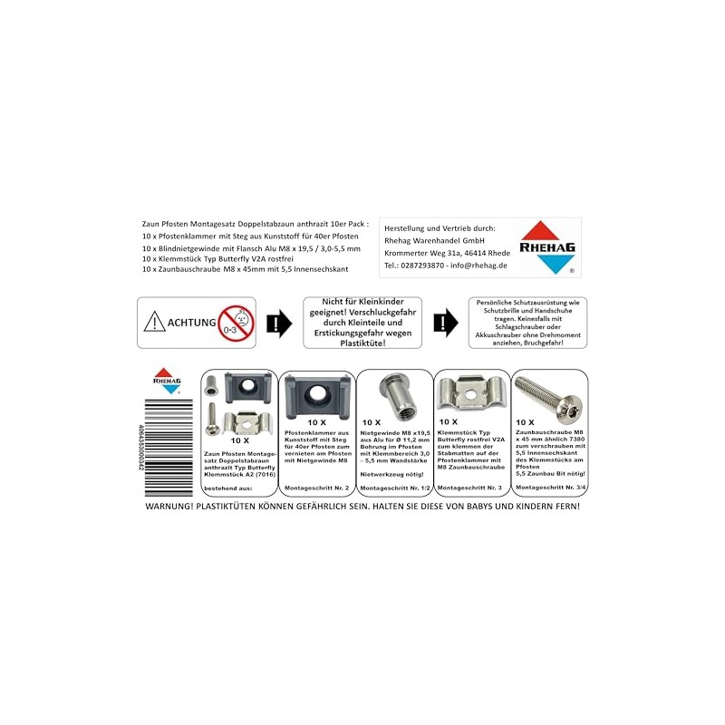 - Fence post assembly kit double rod fence green 6005 type butterfly V2A, pack of 10 for riveting and screwing with 5.5 mm hexagon socket