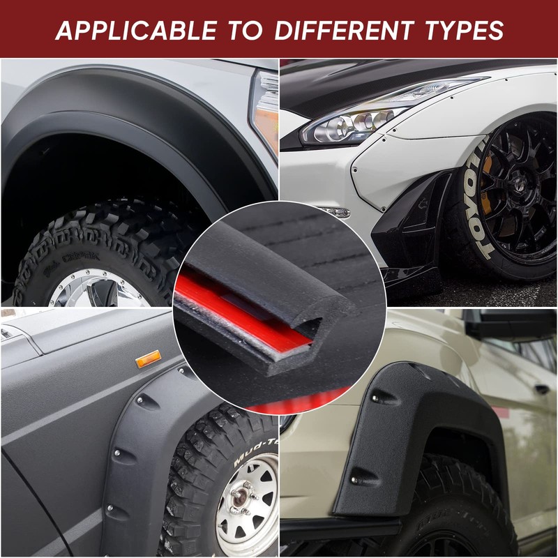- 【GREAT PERFORMANCE】 The fender flares rubber seal which adding extra coverage to your vehicle, increase the tightness of fit between the fender flares and body to avoid gaps and dust. Create a clean, sported and upscale line between flares and body. Fit for most car fender like truck, SUV, VAN, RV, sedan and so on