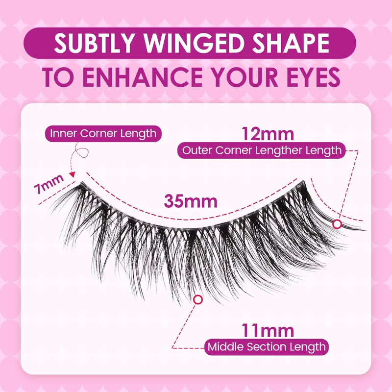 • Wispy Cat-Eye Design for Lifted Eyes: Each lash features a soft cat-eye flare (7mm to 12mm) that subtly elongates your eyes with a flattering winged shape. Whether you’re going for classic or everyday glam, these wispy cat eye lashes create beautiful definition without overdoing it