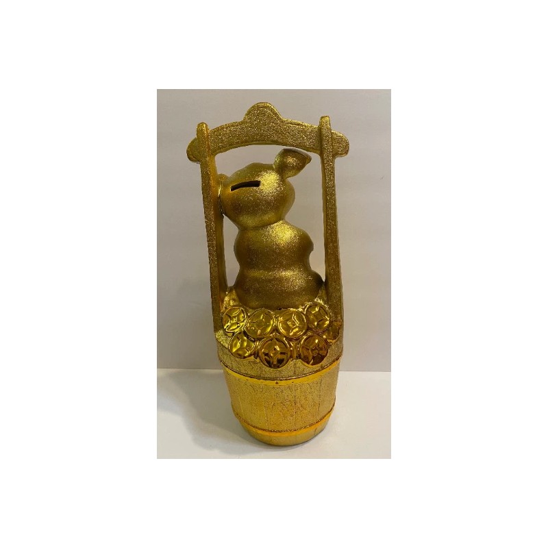 Feng Shui Ceramic Money pigs with Golden basket coin bank wealthy statue 16”H