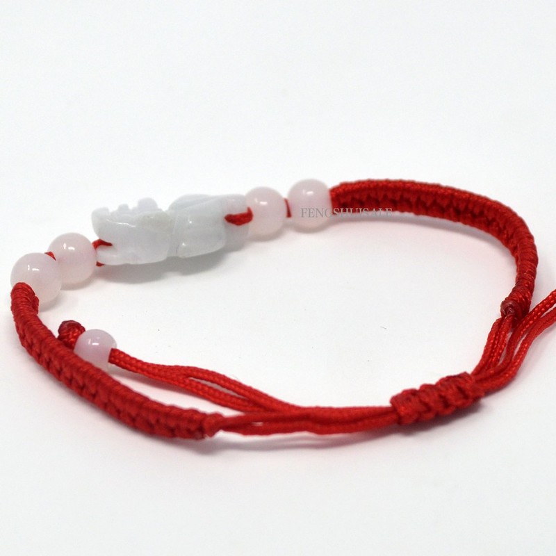 Feng Shui Red String Bracelet W Jade Pi Xiu/ Piyao for Good Health&wealth Sku:H2038