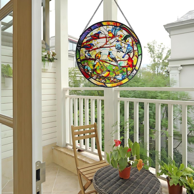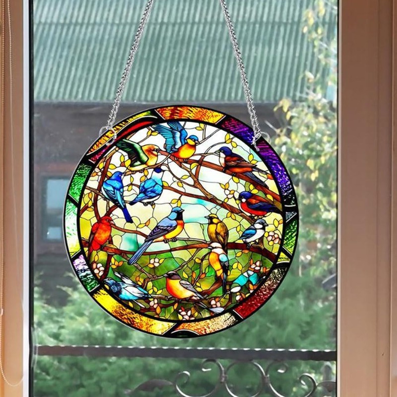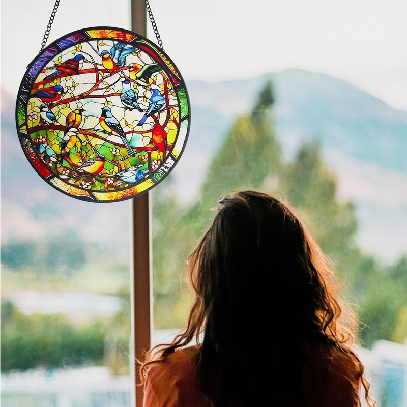 - Unique Design This bird window hanging is designed with birds and forest elements in bright colors. When you touch the surface of the bird picture, you can feel the delicate texture highlights and vivid images as if immersing yourself in nature