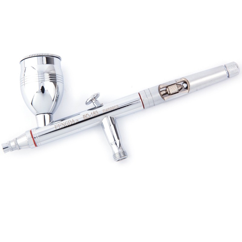 The Airbrush FE-183 Airbrush offers a smooth, responsive long-range trigger controlled by a controllable mainspring system. The body is a tough, plated exterior that is impervious to most solvents. The airbrush design is engineered for easy disassembly and assembly for easy cleaning and repairs. The 0.50mm tip/nozzle unit allows the user to sp
