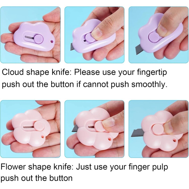 - Delicate and Cute Appearance: The mini retractable utility knives are designed with 2 types of gorgeous appearance, flower shaped and cloud shaped, featured with nice process, smooth edge lines and fine textures, a small but beautiful tool will make your life full of interests.