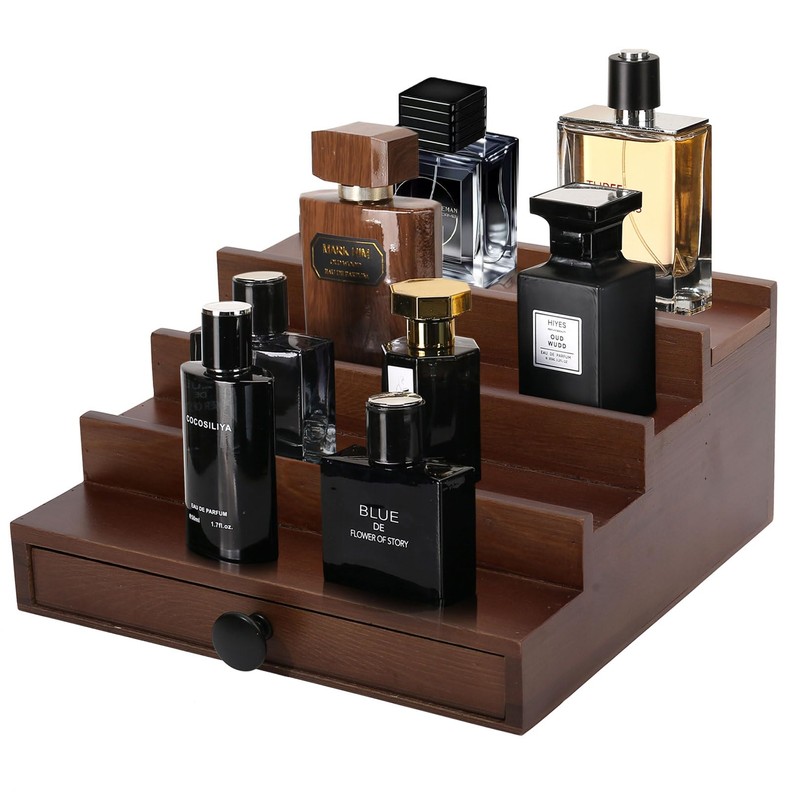 - Large Capacity: The 4 Tier walnut perfume display tray measures 11.1inch long, 10.2inch in width, and 4.72inch in height. Large capacity design to keep your daily accessories easily accessible and neatly organized, perfect for organizing colognes, perfumes, jewelry, watches, and more.