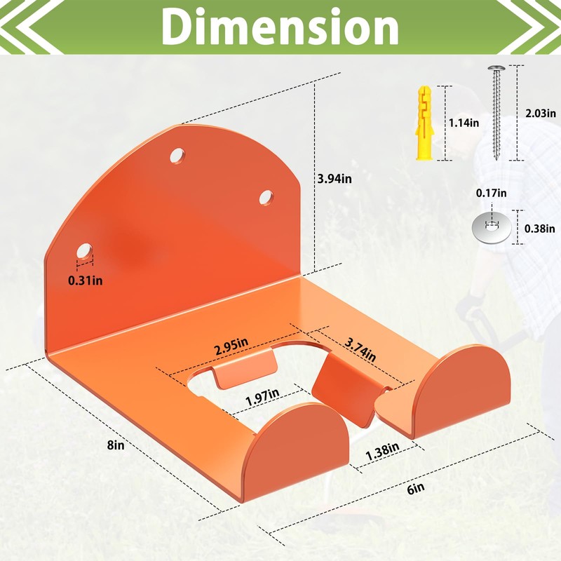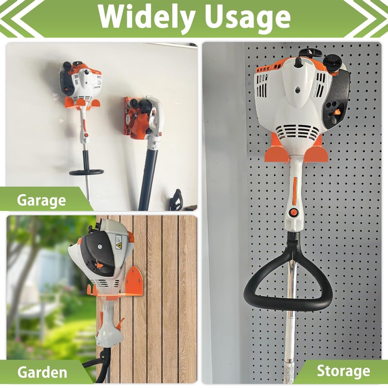 【High Quality】The Weed Wacker Hanger made of premium steel, which is sturdy and durable, and the orange surface coating makes it water and rust proof, making it suitable for a long time. Smooth edges do not hurt your hands and tools