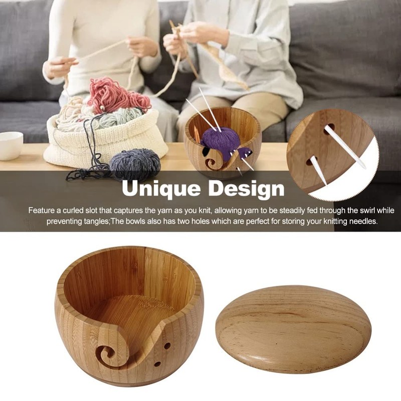 Fengshengli Wooden Yarn Bowl, Knitting Wool Holder, Yarn Bowls with Lid, Crochet Storage
