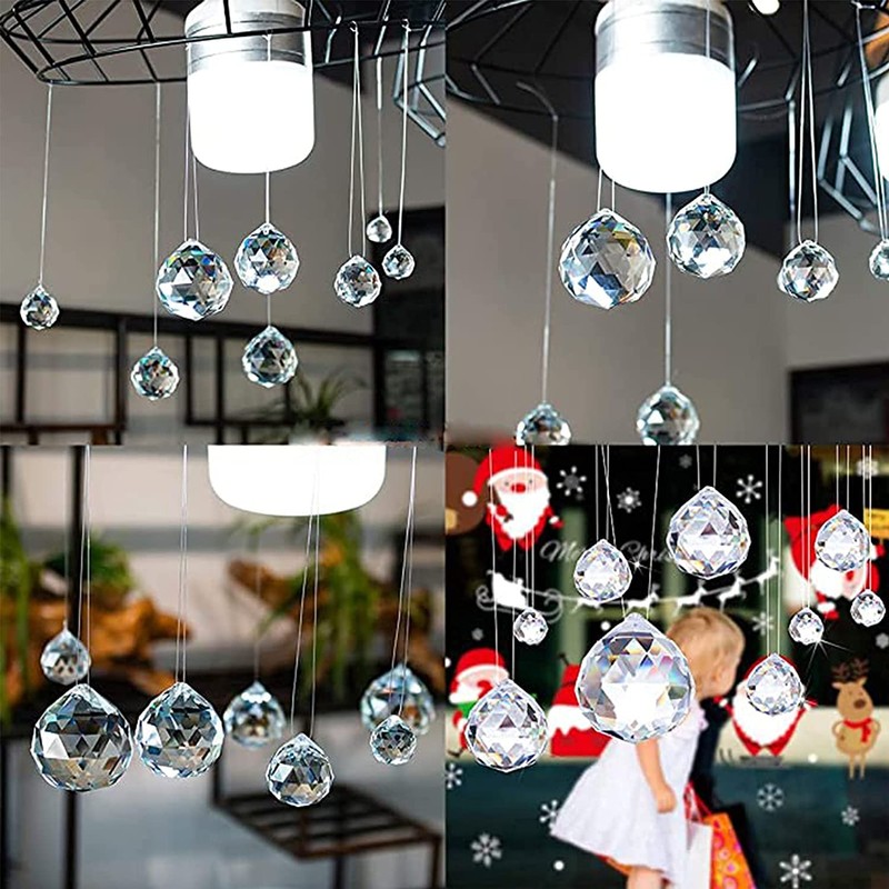 • Size: 40mm - 50mm Approx. Crystal Glass very clear and sparkly;Each ball has a hole on the top and make it easy to hangup