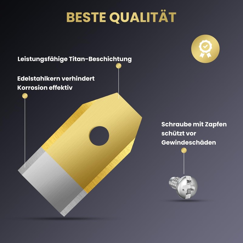 - Precision cut for perfect lawn: the replacement blades are sharpened and therefore cut extremely precisely. The tang of the screw simplifies installation, reduces thread damage and cannot be easily loosened. It ensures a unique.