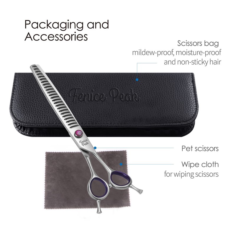 - Safe for Your Pets - These dog grooming shears have a silencer, which can reduce the sound of the scissors handle hitting the sharp stainless steel blade. That can reduce the fear of sensitive pets. Make dog grooming easy and enjoyable.