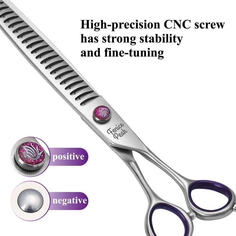 Fenice Peak 8'' Chunker Dog Grooming Scissors with Decorative Screw Professional 440C Stainless Steel Metallic Pet Thinning Shears with Offset Handle Durable and Sharp