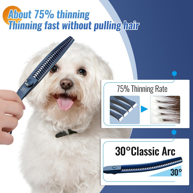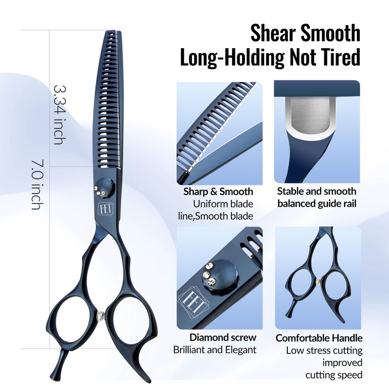 - Features: This pet curved chunker scissors are available in 7 inches with ergonomic handles, suitable for most people. Finely polished, frosted surface, fine metal texture. precise adjustable screws effectively prevents screws from loosening due to prolonged use