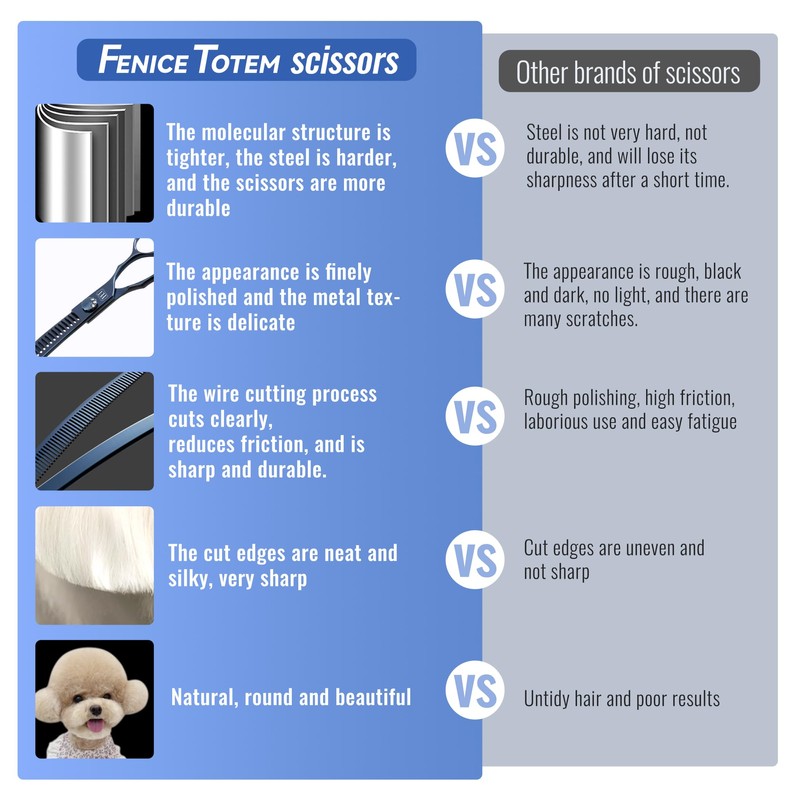 - Material: Extremely High Quality Stainless Steel-The pet scissors are made of 440C Stainless Steel, which is sharp and durable without pulling pet's hair