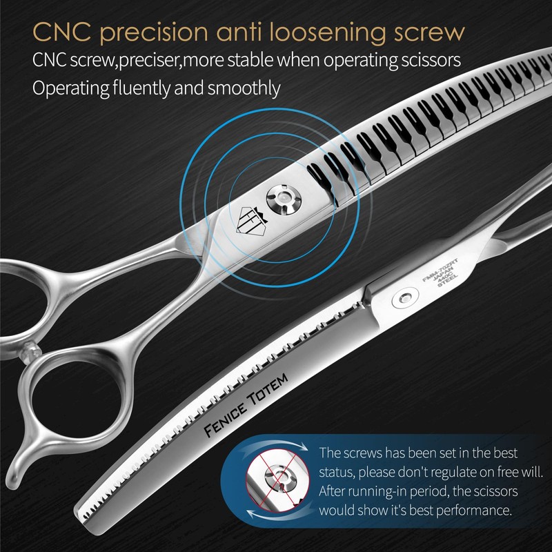 Fenice Totem Professional Pet Grooming Scissors, Curved Chunker with Gradient Teeth, JP440C Steel, 80% Thinning Efficiency (7 inch)