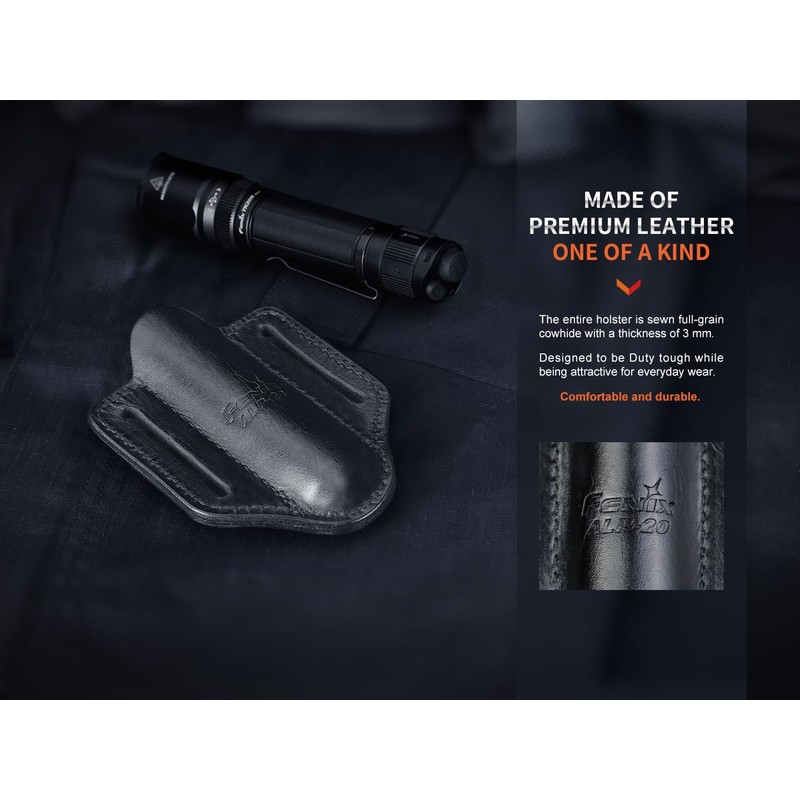 Fenix ALP-20 Leather Flashlight Holster for PD36R/C7/TK20R/PD40R and More with EdisonBright Accessory Carrying case