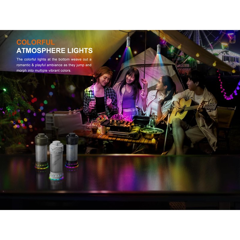 The Fenix CL22R is a lightweight portable lantern that is ideal for campers and outdoor enthusiasts. With a maximum brightness of 500 lumens, it provides ample illumination of a 21-yard diameter area, ideal for camping, hiking, fishing, and other outdoor activities. The CL22R features a combined rotary toggle and electronic switch for easy access to a variety of white, red, and multi-color light modes. Its 360-degree modes provide smooth surrounding lights for tents, campsites, or rooms during power outages. Its down-directional lighting modes provide light for reading, gaming, etc., without disturbing others. In this mode, you can also use it as a flashlight. For enhanced illumination, you can combine its 360-degree and down-directional lighting, delivering an optimal lighting experience in all directions. The CL22R offers two red light modes—constant and flashing—to preserve night vision during nocturnal activities, with the red flash mode serving as an alert or signal. Choose between two types of colorful ambient lights to create an entertaining atmosphere.
