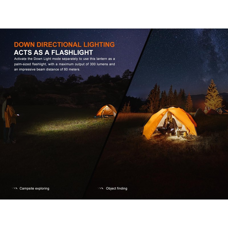 • LANTERN AND FLASHLIGHT - A combined rotary toggle and electronic switch provide easy access to 360-degree surrounding light, downward task light, two red light modes, and two ambient light modes. You can also use it as a flashlight.