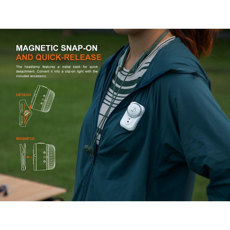 - HANDFREE CLIP-ON LIGHT - A magnetic metal backing allows for quick detachment from the headband, and use the included magnetic clip to convert the HL17R into a hands-free clip-on light.