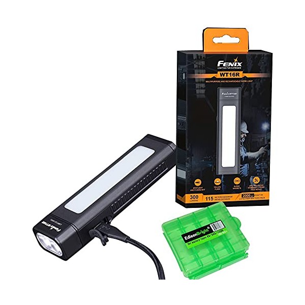 Fenix WT16R 300 Lumen rechargeable magnetic base Handheld flashlight/worklight with battery and EdisonBright charging cable carrying case