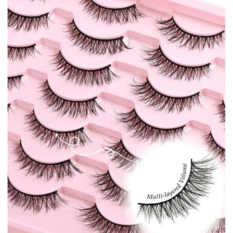 FenixLash False Eyelashes Natural Lashes Wispy Fake Eyelash Cat Eye Strip Lash Mink Lashes Pack Fluffy Eye Lashes Natural Look Short Cateye Lash Strips (Natural Wispy)