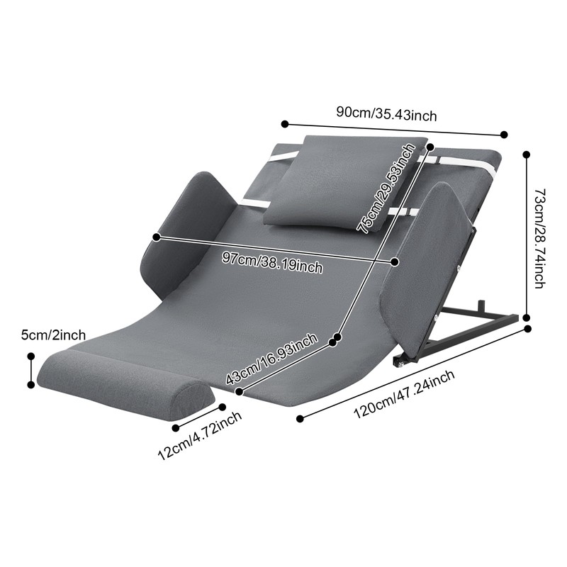 This electric adjustable backrest is an intelligent nursing device designed specifically for the elderly and people with limited mobility. It helps them get up by electrically lifting the backrest, effectively improving nursing efficiency. The high-elasticity sponge, sturdy bracket, thoughtful side handrails, 10°-80° angle adjustment, simple remote control operation, high-performance motor, and detachable design enhance the safety, convenience, and flexibility of use. With it, the workload of nursing staff will be reduced, and the living comfort of the elderly can be improved.