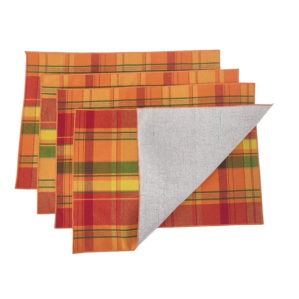 Fennco Styles Harvest Plaid 2 Layers Reversible Design Terracotta Cotton Placemats 13" W x 19" L, Set of 4 - Autumn Plaid Table Mats for Home Decor, Thanksgiving, Holiday and Special Occasion