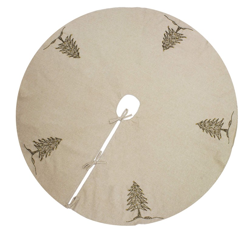 Fennco Styles Sapin De Noël Gold Beaded Christmas Tree Design Holiday Tree Skirt:
