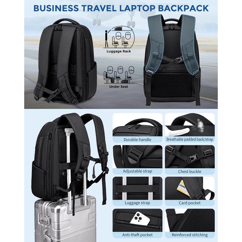 - 【COMFY & STURDY】 Featuring a breathable airflow back, lightweight foam padding, and adjustable mesh shoulder straps, this mens backpack ensures maximum comfort and support. It includes a foam-padded top handle, sturdy side handles, ergonomic non-slip fasteners, and a luggage strap for easy and secure carrying.