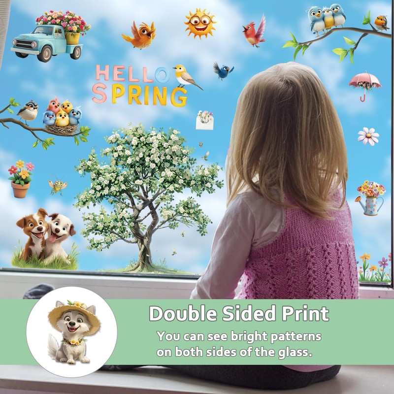 - [Doppelseitiger Druck]: Frühlingsaufkleber haben auf beiden Seiten helle Muster, und Sie können von beiden Seiten des Glases gut aussehende Bilder sehen.
