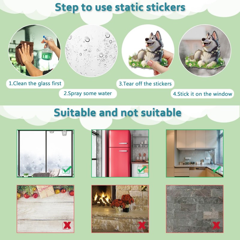 Fensteraufkleber sollten nur auf glatten Oberflächen wie Fenstern, Glastüren, Schaufenstern, Kühlschränken, Schrankleuchten verwendet werden, nicht auf staubigen oder rauen Oberflächen verwenden.