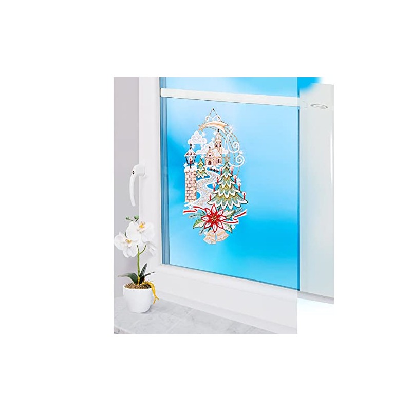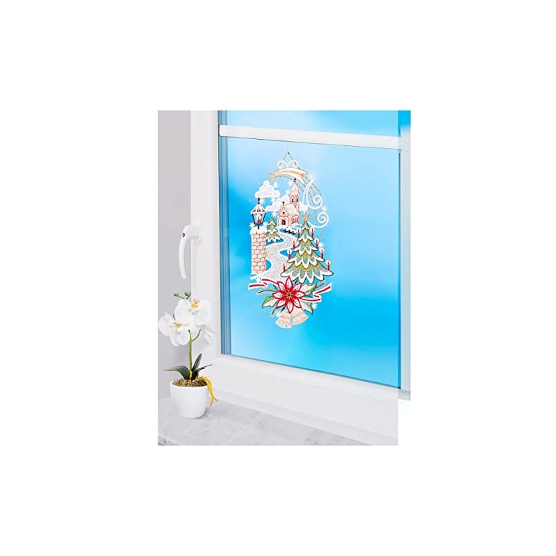 - High-quality window decoration for Christmas and winter. Beautiful window picture made from the finest lace, made in Germany